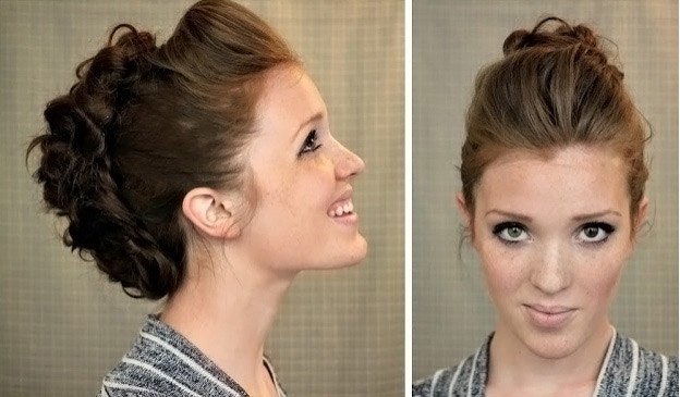 - Боковые локоны с челкой также поднять вверх, скрепив невидимками.
