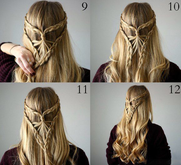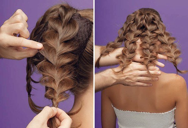 - Расправить, придав переплету объемности. Свободно парящие волосы подкрутить плойкой.