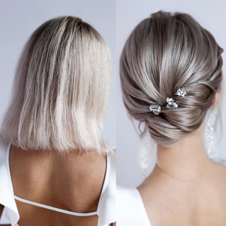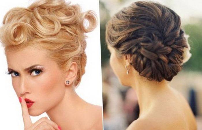 Выполняются на средней и длине ниже плеч, красивые укладки создаются с длинных волн. Короткие волосы также можно собрать, если прядки достигают уровня подбородка. С помощью начесов и фактурных локонов легко создать эффект пышной шевелюры и с небольшого пучка. Локоны по пояс доставляют своим обладательницам немало неприятностей. Ежедневные укладки, огромное количество шпилек, резинок ослабляют пряди, приводят к выпадению. Для таких случаев используются простые, но стильные прически, фиксация которых ограничивается минимальным количеством аксессуаров.