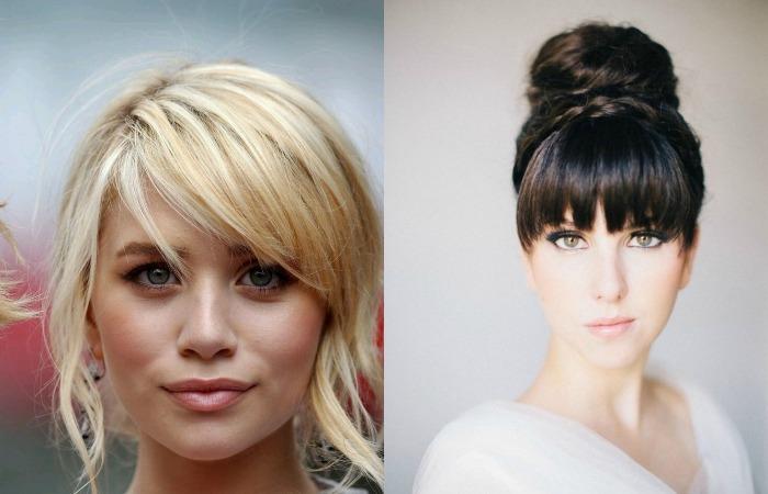 Укладки с челкой освежают образ, вносят нотки индивидуальности, ведь форма подбирается исключительно под овал лица. Должна соответствовать общей концепции прически, является частью общей композиции. Существуют варианты, когда с помощью плетений и невидимок можно спрятать часть волос, поэкспериментировав с новыми образами.