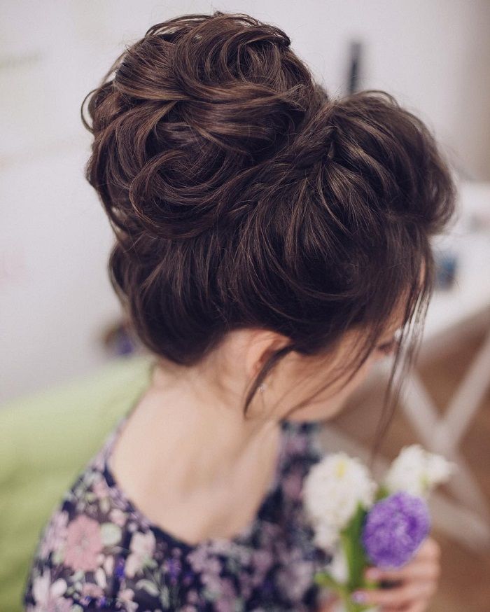 Большего количества времени требуют прически для вьющихся, кудрявых локонов. Жесткие и непослушные, требуют применения стайлинговых продуктов. Смягчает структуру, придает блеск, ухоженный вид, крем или масло для волос. Также средства делают пряди более эластичными, из копны локонов легко создавать выбранную модель. Практичные пучки или пышные косы станут отличным решением для усмирения непослушных прядок.