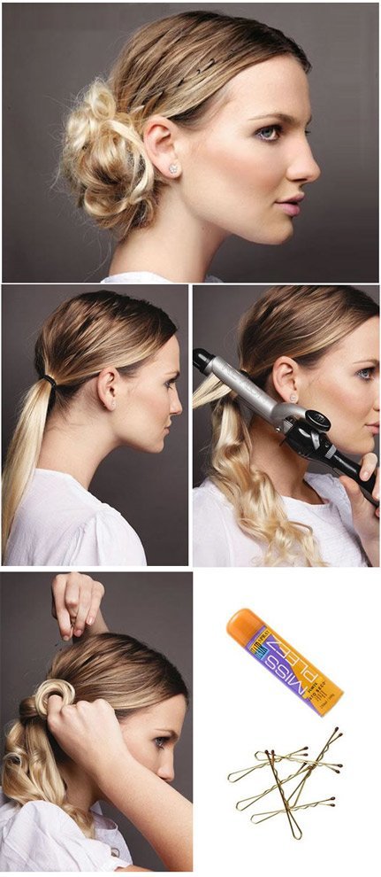 Простая и быстрая прическа, на случай если на сборы осталось 5 минут! Просто разделите волосы на две равные части и завяжите на узел, далее скрутите пряди в жгутики и обмотайте вокруг узла, закрепите прическу шпильками и вы готовы!