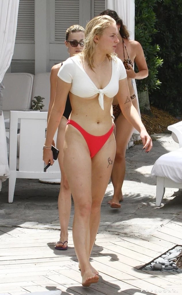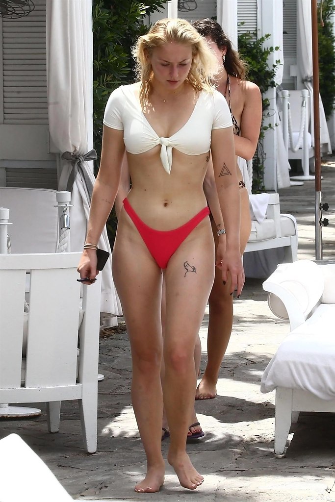 Начало ее набил себе супруг Тернер. Появились у Софи и маленькие символы на пальцах рук. Они имеют для девушки огромное значение, которое она не спешит раскрывать журналистам. Известно, что на мизинце у звезды набиты инициалы ее дедушки, на указательном пальце – пламя.