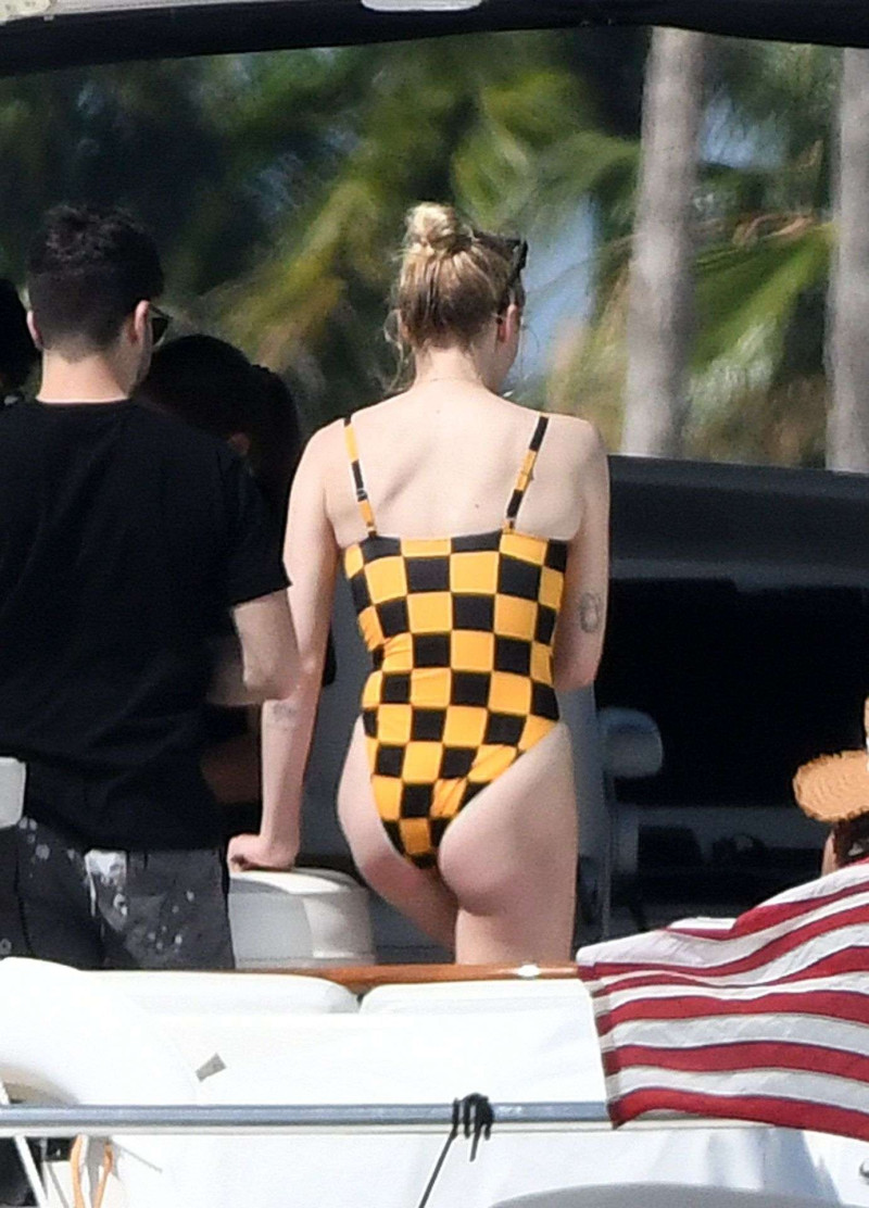 Miami, FL – *PREMIUM-EXCLUSIVE* – Young Couple Joe Jonas and Sophie Turner enjoy a day at the Delano Hotel pool in Miami. The pair were seen packing on the PDA while taking a dip in the pool after a couple of drinks. Joe who is celebrating his 29th birthday on the 15th, also enjoyed a cigar as they relaxed with friends. **SHOT ON 08/13/2018**Pictured: Sophie TurnerBACKGRID USA 14 AUGUST 2018USA: 1 310 798 9111 / usasales@backgrid.comUK: 44 208 344 2007 / uksales@backgrid.com*UK Clients – Pictures Containing ChildrenPlease Pixelate Face Prior To Publication*