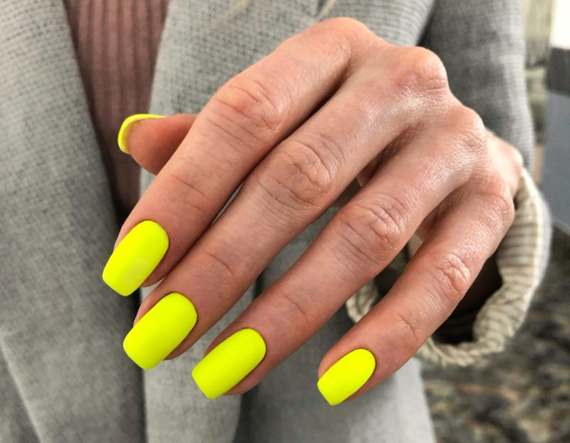 Однотонный кислотный цвет на ногтях