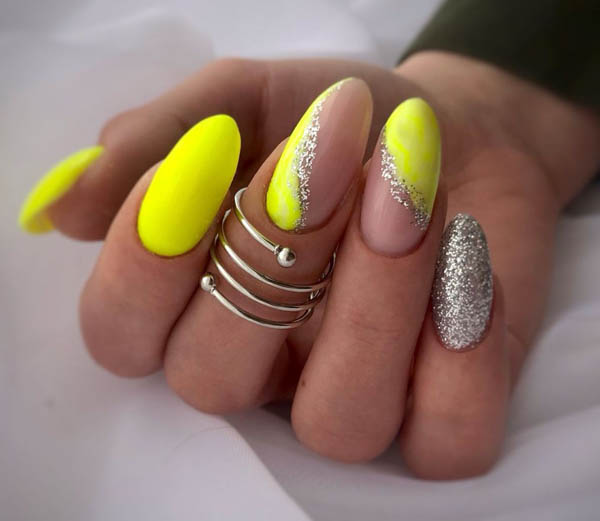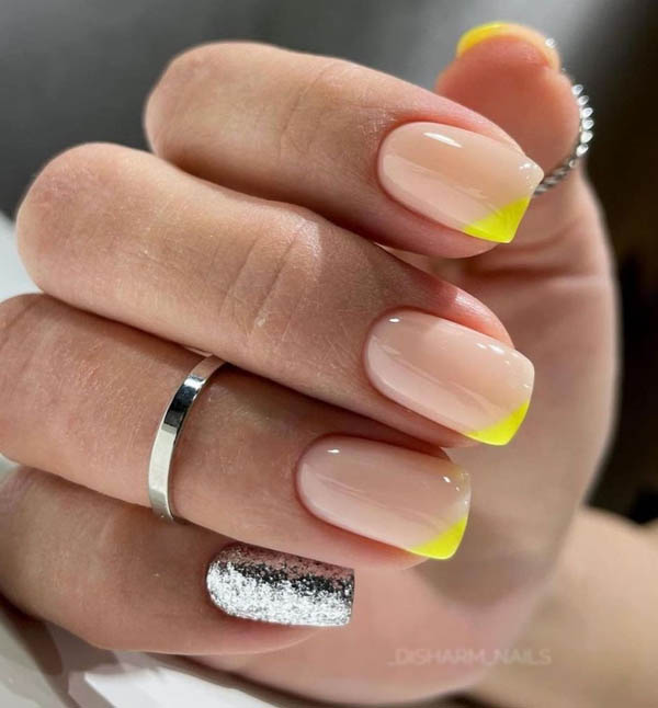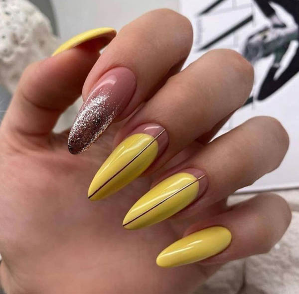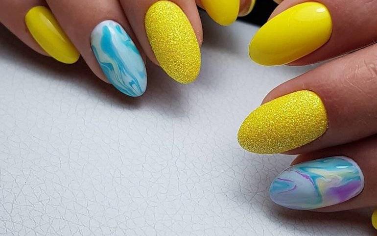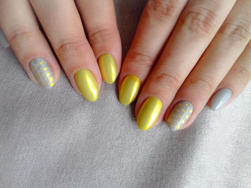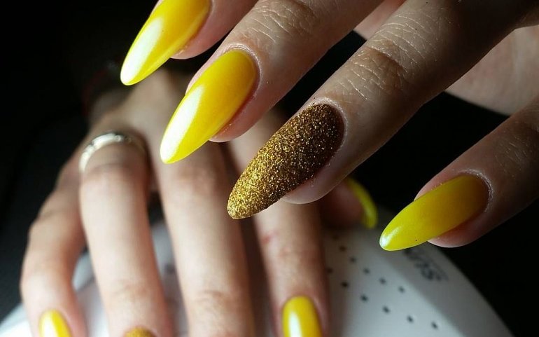 Желтые ногти с пигментами