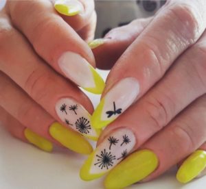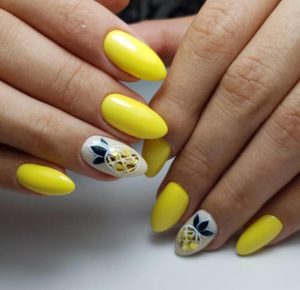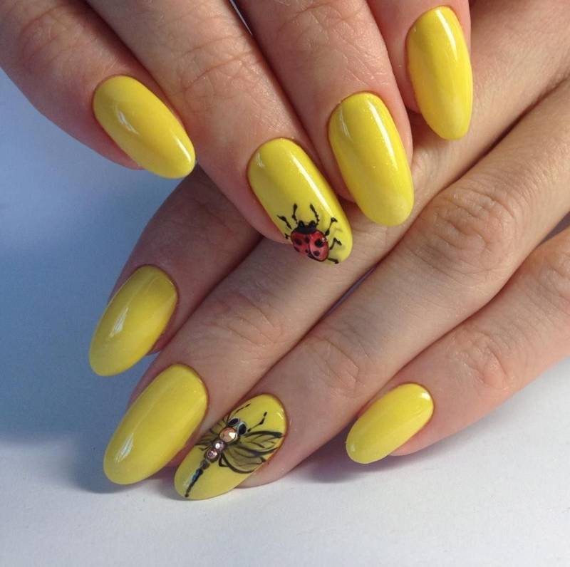 Рисунки также остаются одной из наиболее модных тенденций в маникюре, которая уже долгое время не сдает свои лидирующие позиции. Лучшими идеями рисунков на желтых ногтях являются следующие: