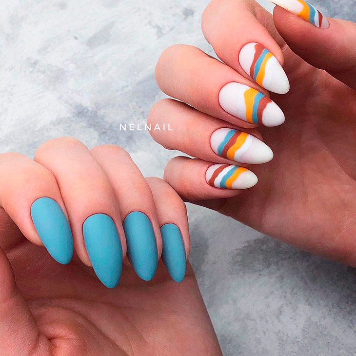 - Хочешь использовать модный тренд “колорблок”. Эта стильная фишка сейчас как никогда ранее популярна среди блогеров и модных инфлюенсеров. Колорблок — сочетание нескольких контрастных вещей в одном образе. Микс красного и синего, желтого и зеленого, розового и голубого выглядит свежо и необычно. А чтобы попробовать этот тренд с минимальными рисками, один из цветов всегда можно использовать на ногтях.