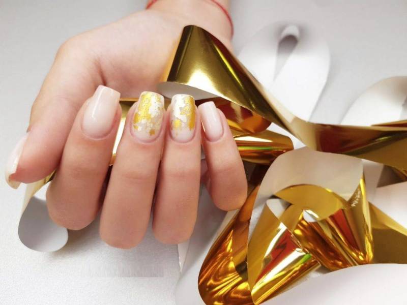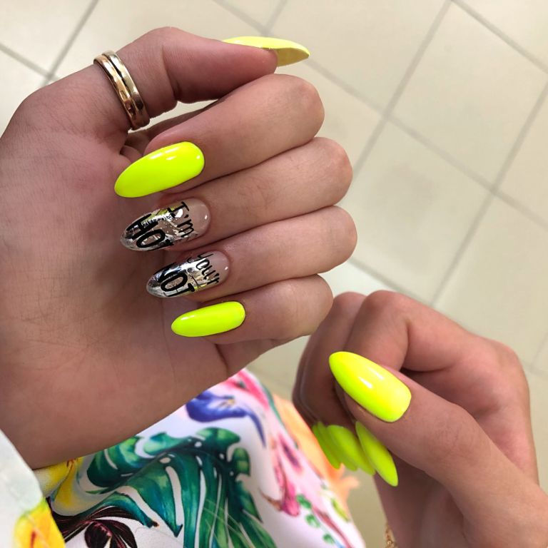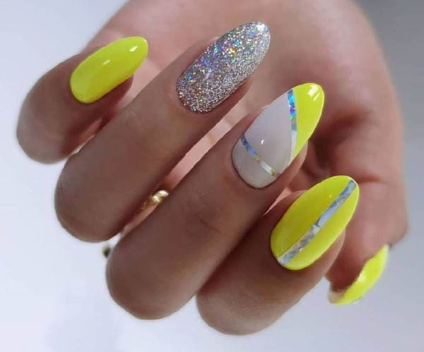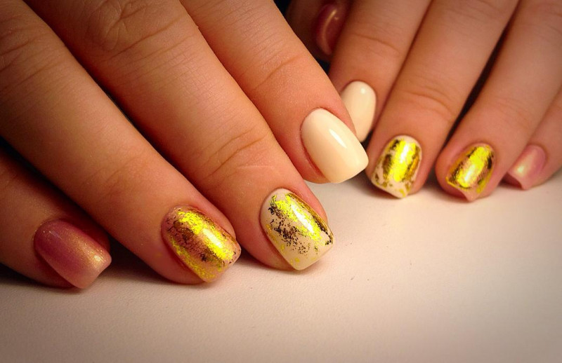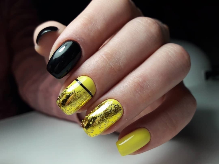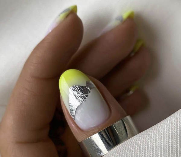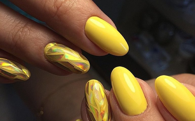 Желтые ногти с фольгой