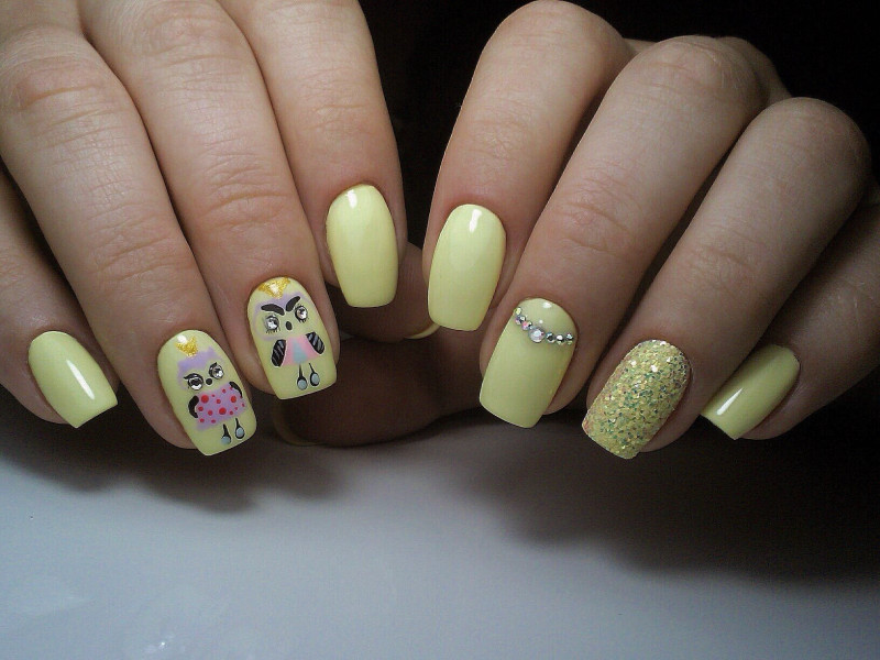 Мультяшный стиль. Рисовка любимых героев на ногтях – отличный вариант дополнения желтого маникюра