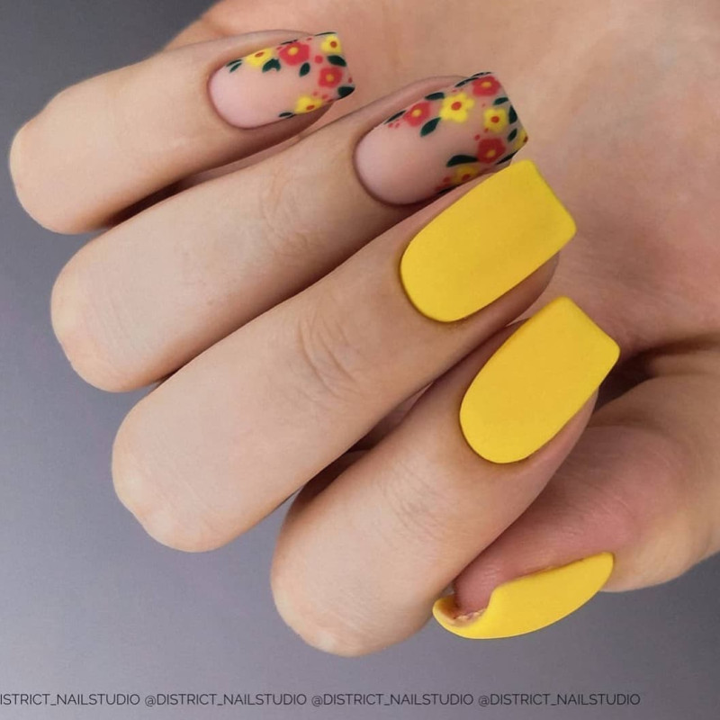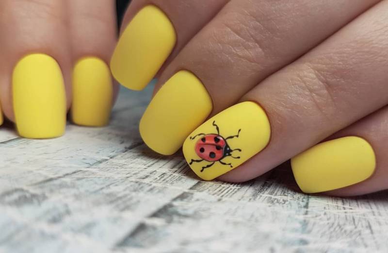 Жёлтый матовый маникюр