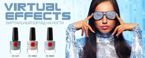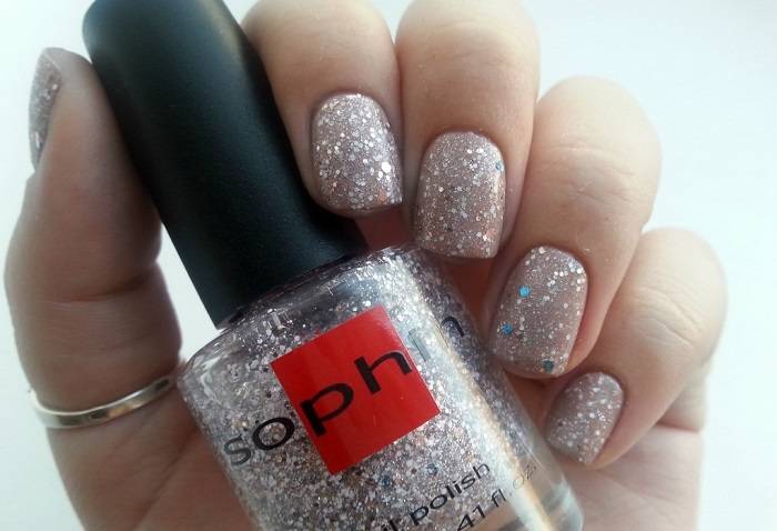 - Sophin virtual effects collection. Блестящие лаки вряд ли подойдут для повседневного использования, но с их помощью можно создать очень яркий, оригинальный маникюр. Всего данная линейка представлена четырьмя цветами, а в состав продукта входят серебристые блестки, золотистые блестки из слюды. Недостатком данных составов можно считать то, что их довольно сложно снимать.