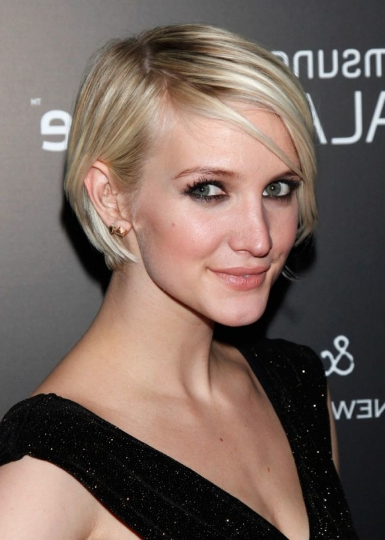Самый женственный вариант этой стрижки обязательно включает косую челку. Именно она делает образ более интересным и запоминающимся. Вариант для креативных модниц – многослойная челка с явными ступенями различной длины.