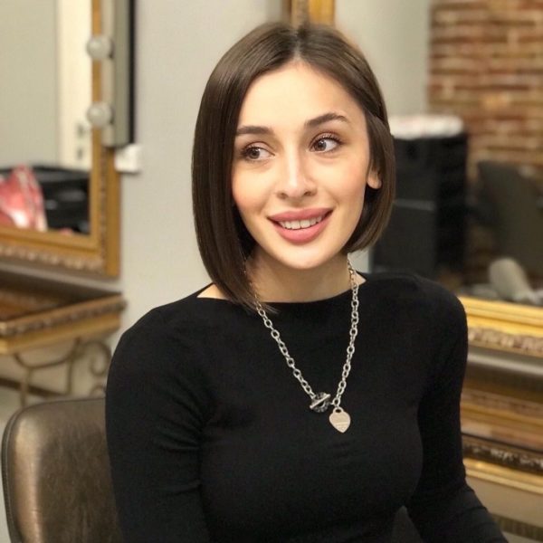 Асимметричное каре пользуется популярностью у женщин, вы только посмотрите на фото, как это красиво. В народе такую прическу называют «Как у Бузовой», она подходит практически любой форме лица. Лишь удлиненная, вытянутая форма будет казаться еще длиннее. Барышням придает какую-то загадочность, очарование и шарм.
