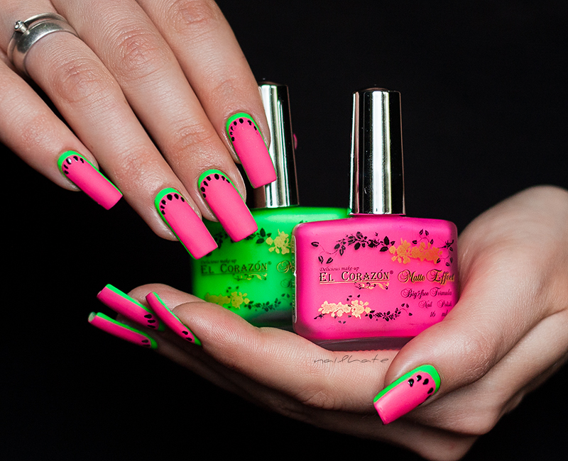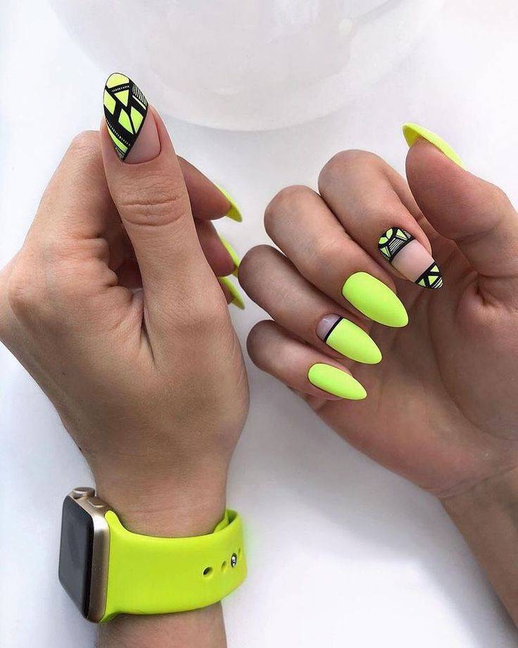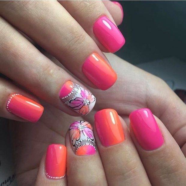 Многим нравятся варианты с яркой лункой. Для весенне-летнего сезона отлично подойдет дизайн с неоновыми оттенками.