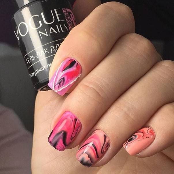 - Водный маникюр. Стоит сделать такой вариант ярким, но необходимо терпение.