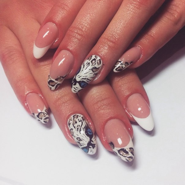 В тренде в этом году животные принты, в том числе леопардовые пятнышки, полосочки как у зебры, змеиные узоры. Также можно украшать наращенные ноготки изображениями милых зверушек.