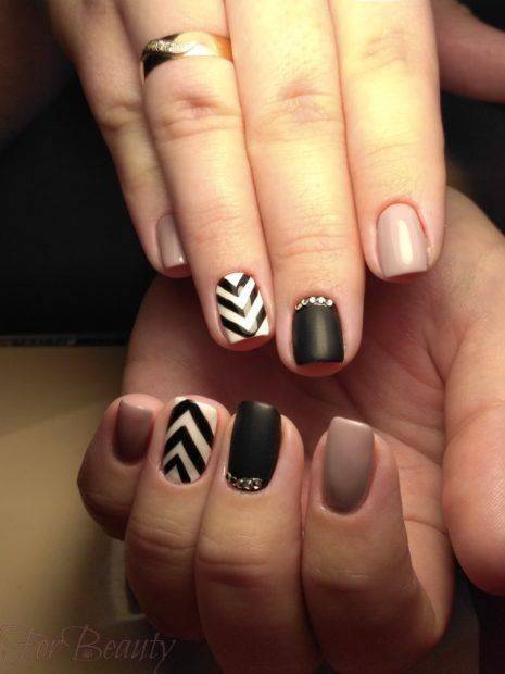 Маникюр с геометрическими узорами также позволяет добавить дополнительные декоративные элементы, такие как стразы, бусины, глиттер, металлические наконечники и другие детали, чтобы придать маникюру еще больше индивидуальности и оригинальности.