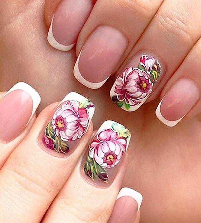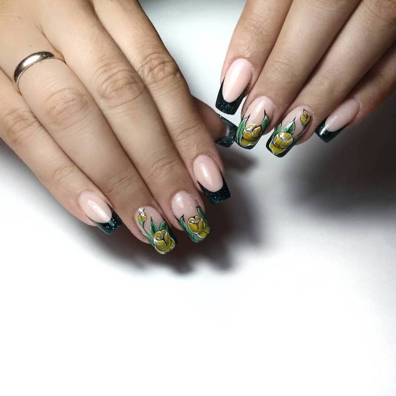 Очень милая тенденция, которая будет актуальна весной – маникюр с маленькими цветочками. Мастера рисуют на ногтях сакуру, пионы, тюльпаны. Особенно нежно подобный дизайн смотрится в пастельных тонах.