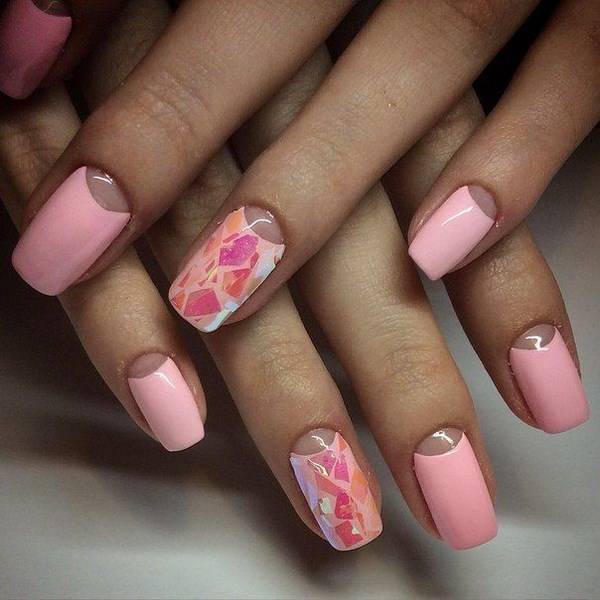 - нюдовый маникюр – с глянцевым и матовым топом;