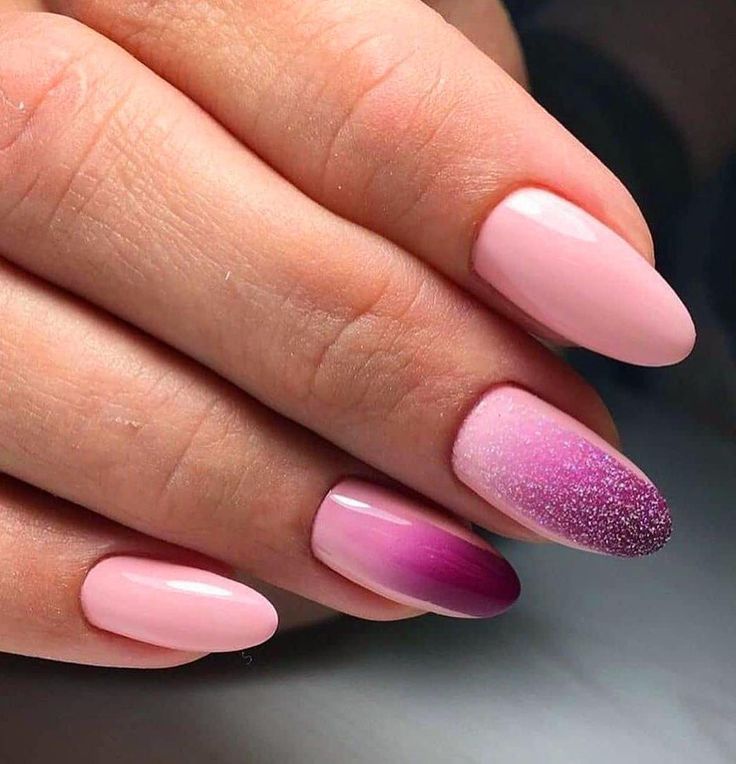 Градиентный маникюр. Плавно переходящие цвета. Делается с помощью подручных средств и выглядит профессионально.