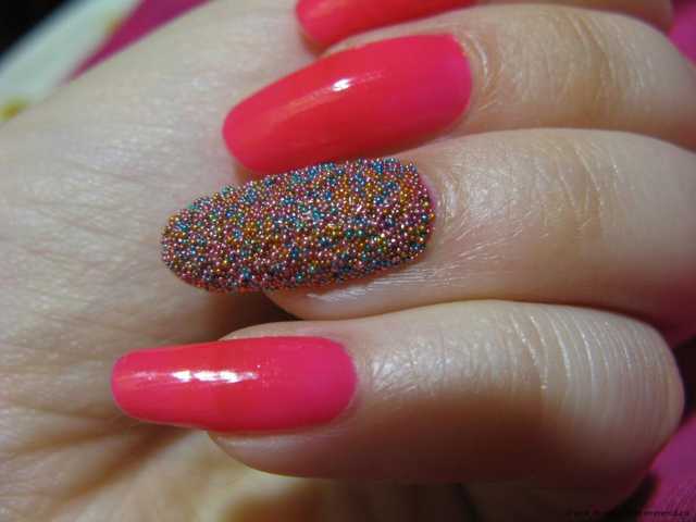 Бульенки. Маленькие бусинки. Часто идут в дополнение к стразам, но могут и играть главную роль в декоре ногтя – «Икорный маникюр».Блестки. Другое название блесток – глиттер. Это очень мелко нарубленная металлизированная пленка, монохромная или разноцветная, чаще всего блестящая. Блестки бывают уже замешаны в цветном или прозрачном лаке, а бывают сухие, в отдельной упаковке. Некоторые виды блесток крупные, фигурные – такие выкладывают в композицию по одной с помощью иглы или дотца. Другой вид блесток – шиммер – совсем микроскопические частицы в составе лака, придающие ему легкое свечение под определенным углом света. В отличие от глиттера, шиммер вместе с лаком представляет гомогенную плотную массу. Поле для фантазии с использованием блесток в украшении маникюра просто огромно. Дизайн с использованием бархатного песка. Бархатный песок — это бесцветная акриловая пудра, которой сыпется на окрашенную поверхность ногтя, прилипает к гель-лаку, принимает его цвет. После чего слой такого покрытия просушивается в лампе. Обсыпают как всю поверхность ногтя, так и только нарисованный узор типа вензелей или «вязаный свитер».Кракелюр. Узор, имитирующий трещины краски, как на старых картинах. Эффект достигается специальным лаком, который после нанесения сразу расходится трещинами.Втирки – порошок тончайшего помола, втирается в накрашенную и высушенную ногтевую пластину. Втирки придают лаку эффект определенного типа блеска. Самые популярные эффекты – «призма» с 3-D сиянием, «голографик» с более крупными частицами, «майский жук» или «хамелеон», жемчуг, зеркальная втирка. Дизайн маникюра фольгой. Очень простой, но эффектный вид декора ногтей. Специальная пленка с амальгамным напылением с одной стороны прикладывается к накрашенному ногтю и отпечатывается на гель-лаке. Сверху закрепляется топом. Все блестит и сверкает.Битое стекло — разновидность декора с фольгой, когда её не отпечатывают на лаке, а режут на мелкие кусочки, выкладывают их на ногте, имитируя осколки стекла.Кошачий глаз (магнитный лак) – разноцветный гель-лак с мельчайшими частицами из металла, которые при поднесении магнитной пластинки собираются в соответствии с осью магнитного поля. На поверхности ногтя получается почти объемные полосы 3d блеска. Рисунок скопления частиц зависит от магнита – есть и с несколькими полосками, и с шариками.