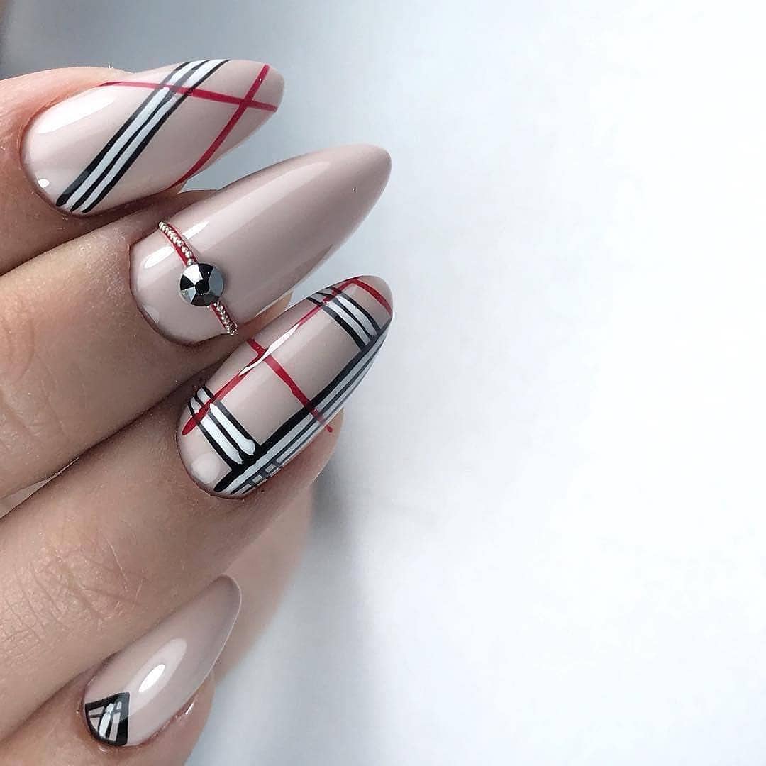 Довольно новая тенденция – клетчатые рисунки на ногтях. Клетка, как мелкая, так и крупная, смотрится очень стильно. Можно использовать классическую, монохромную, коричневую клетку. Но и дерзкие яркие варианты очень уместны.