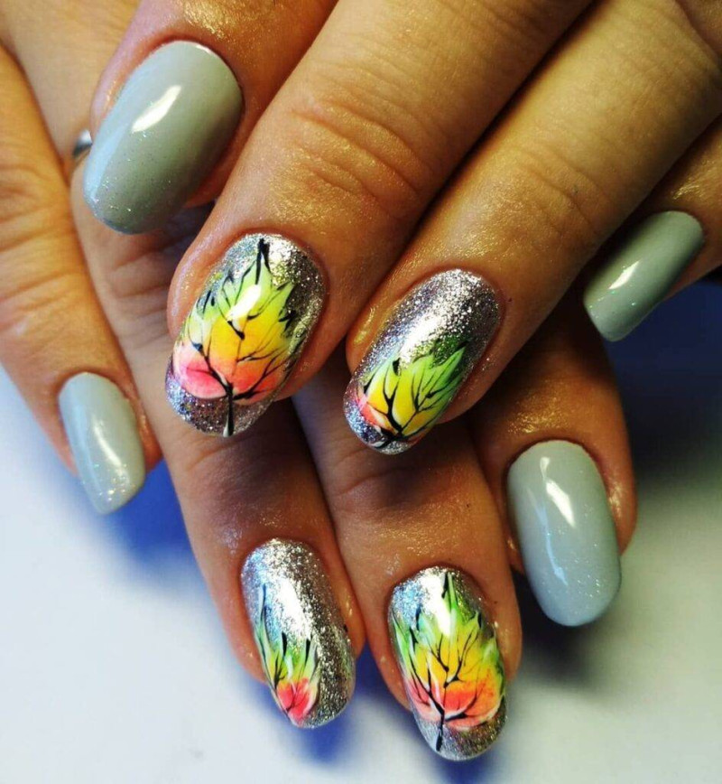 Популярное использование серых лаков – основа под нейл-арт. С серым цветом гармонируют актуальные трендовые оттенки на сегодняшний день: красный, желтый, коричневый.