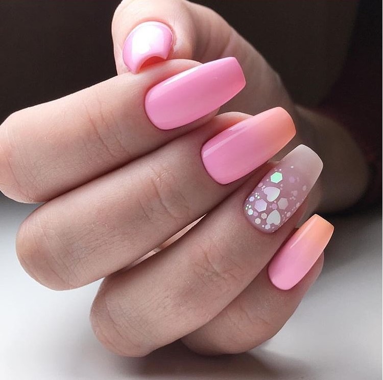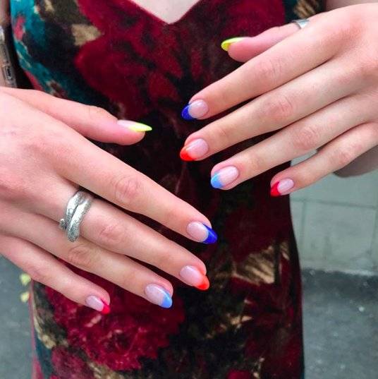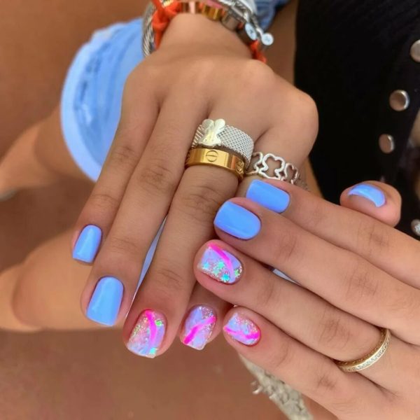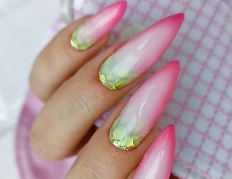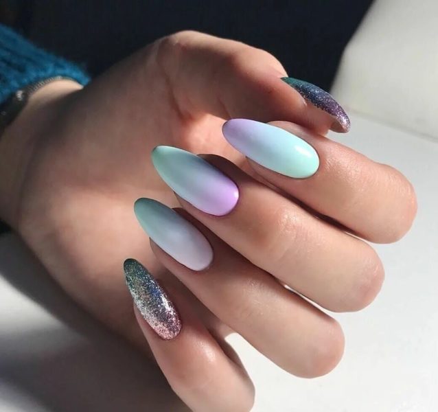 Это может быть сочное летнее омбре, дополненного актуальным блестящим элементом.