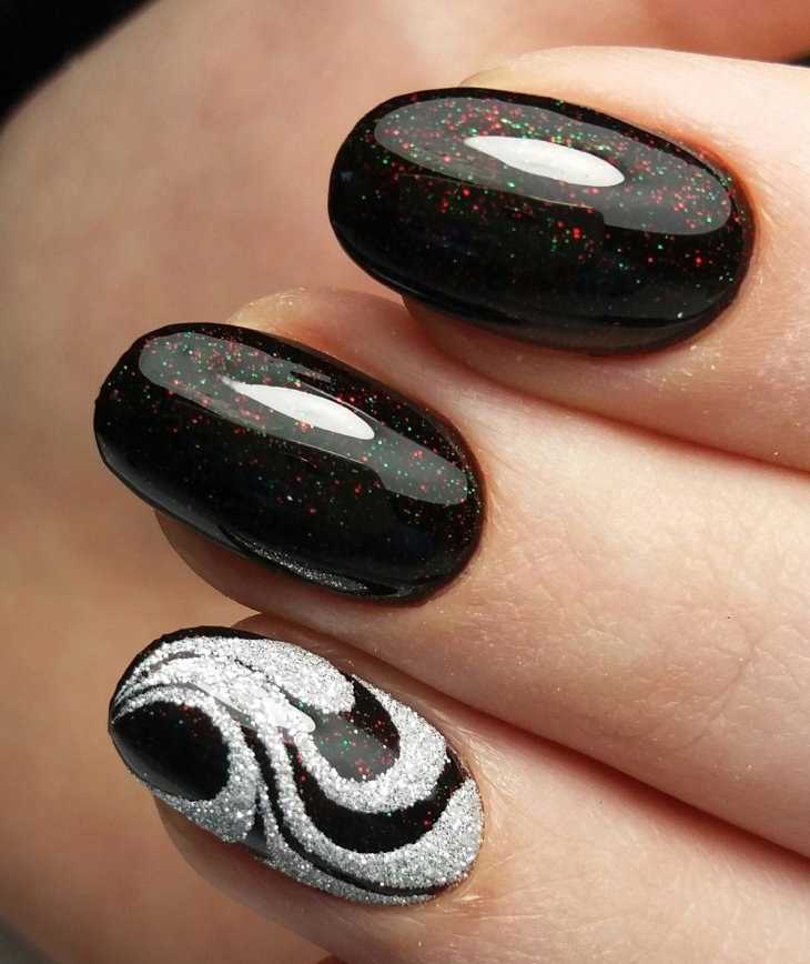 Неоспоримое достоинство черного цвета – сочетание с макияжем и одеждой. Маникюр гармонирует как в основе, так и в актуальных акцентах. На сегодняшний день дополнением будут украшения, которые разбавят его.