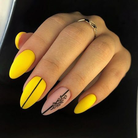 Эта форма маникюра визуально удлинят пальчики. На сегодняшний день самое актуальное в дизайне – это френч и омбре, но с дополнительными декоративными украшениями. При нанесении однотонного лака, лучше добавить пару ярких акцентов.