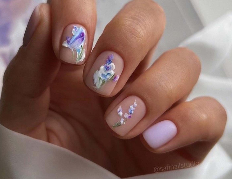 В цветовой палитре модного маникюра 2023 года доминируют натуральные и пастельные оттенки: бежевый, розовый, голубой, лавандовый.