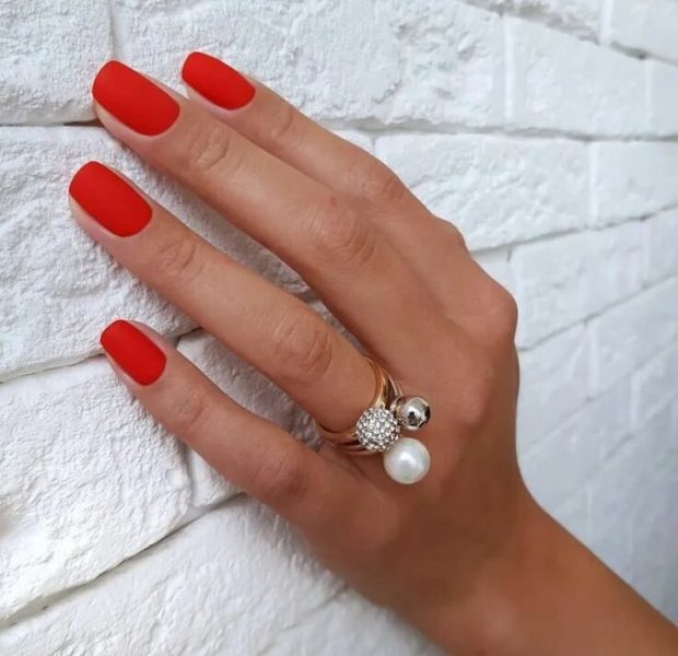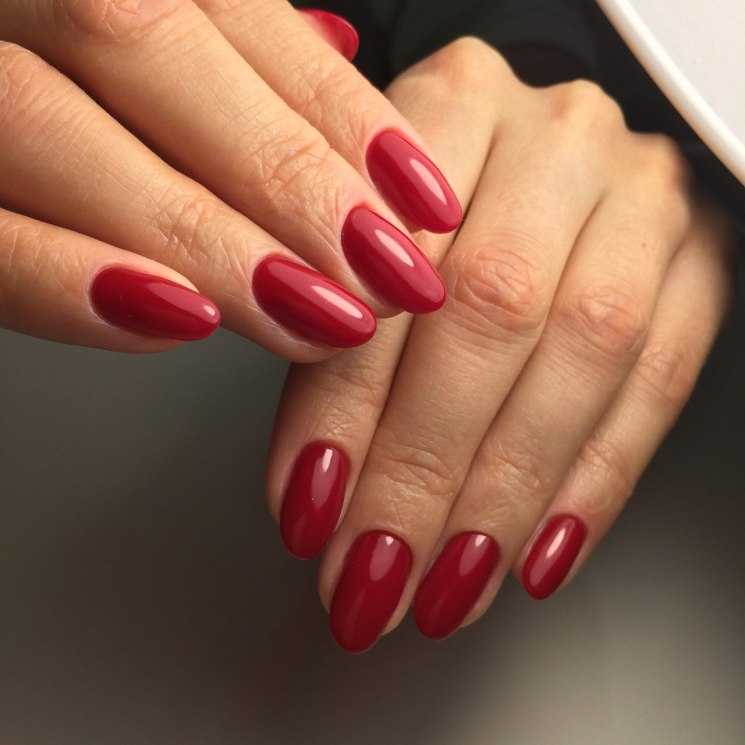 Популярен в 2023 году в виде минимализма. Бордовый, винный и вишневый актуален с длинными и короткими ногтями.
