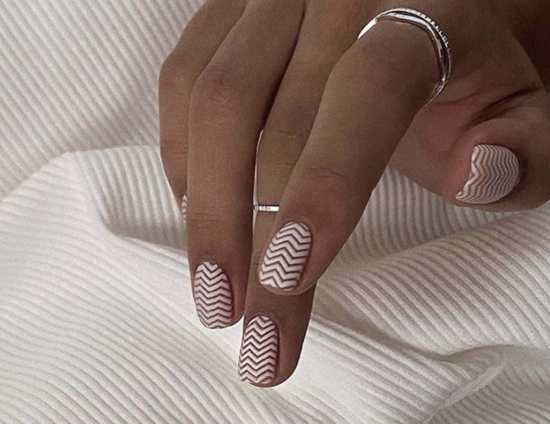 - Маникюр зебры выглядят очень стильно, если сделать его правильно и аккуратно. Вы можете сделать это, покрасив ногти в белый цвет и добавив на него черные кривые линии.