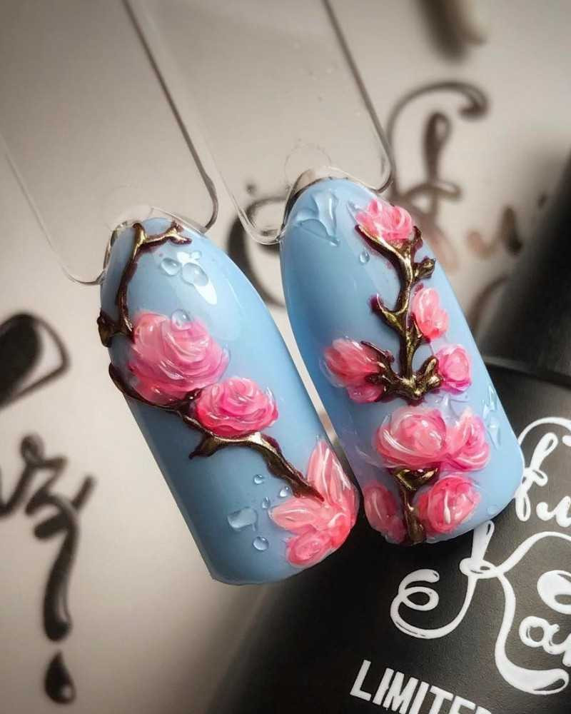 Если вы предпочитаете украшать свои ноготки лаконичными веточками, то дизайн с флористическими мотивами для вас идеальный вариант — он придаст женственности вашему образу. Кроме того, он популярен в любое время года. Весной и летом он вне конкуренции.