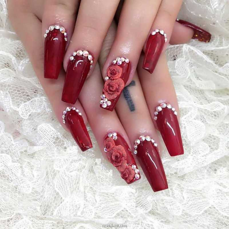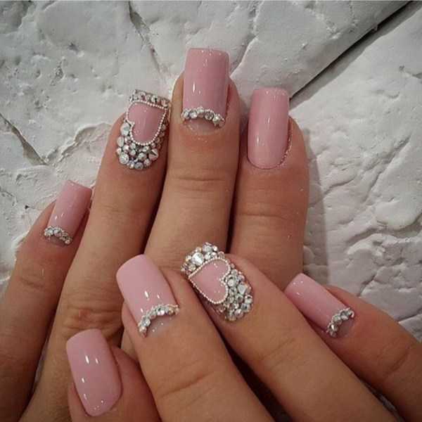 Актуальный маникюр на 14 февраля очарователен в дизайне ногтей стразами, позволяющих, как дополнить романтичный нейл-арт, так и покрыть камушками с сердечком весь пальчик, создав акцент в модном маникюре на 14 февраля.