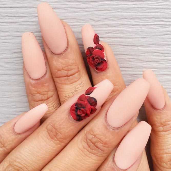 Модный матовый вызывает восхищение и заставляет непременно обратить внимание на модные бархатные ногти. А еще если выбрать яркий красный, рисунки сердечек, надписи «love» и др. декор, то вы получите восхитительный маникюр с сердцами в матовом решении на праздник всех влюбленных