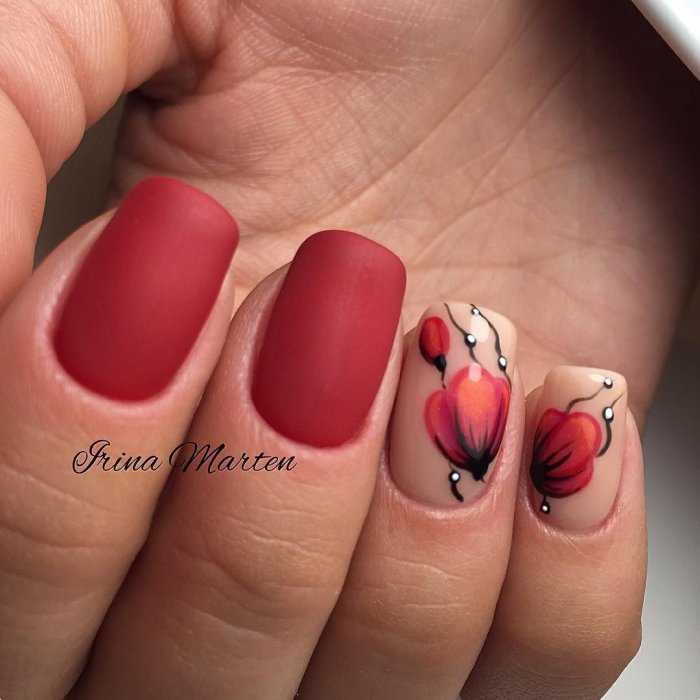 Нежный и глубокий эффект на ногтях в любимом цвете у вас получится с матовым покрытием на ноготочках
