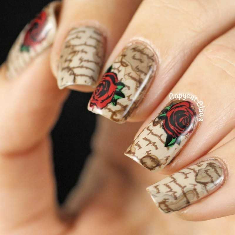 Сложные рисунки в технике стемпинг не требуют особого умения в рисовании. Геометрия или кружевные мотивы в этом стиле будут смотреться великолепно. Особенно он ценится из-за простоты домашнего маникюра.