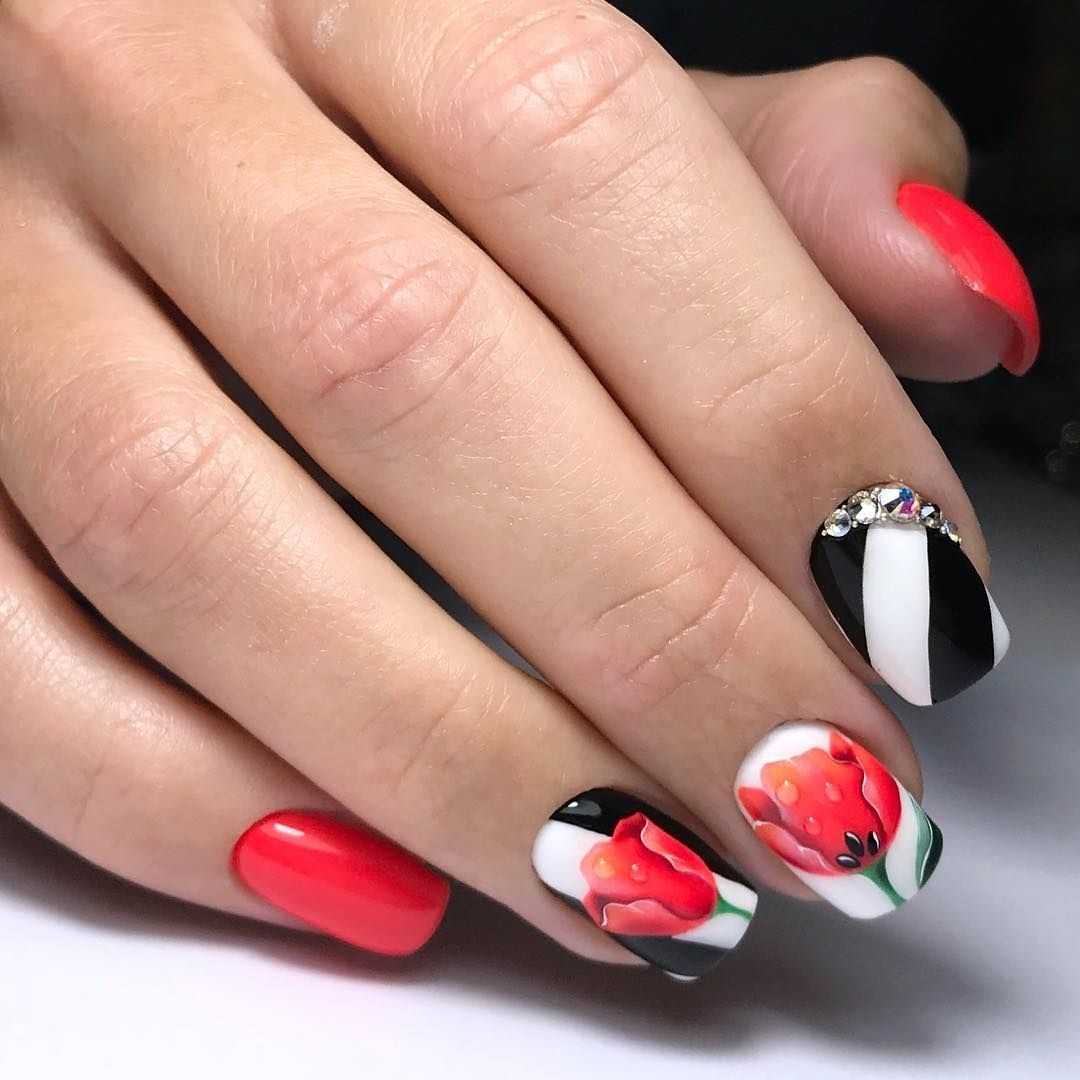 Зачем выбирать один цвет, если можно использовать несколько одновременно? Разноцветные ногти — отличная идея для тех, кто хочет сделать смелый и неповторимый маникюр. Не стесняйтесь проявлять творческий подход и воплощать в реальность этот смелый и модный дизайн. Оттенков на выбор так много, что можно растеряться! Более того, вы можете сочетать выбранные цвета с креативным декором. Это будет выглядеть очень молодёжно и стильно.