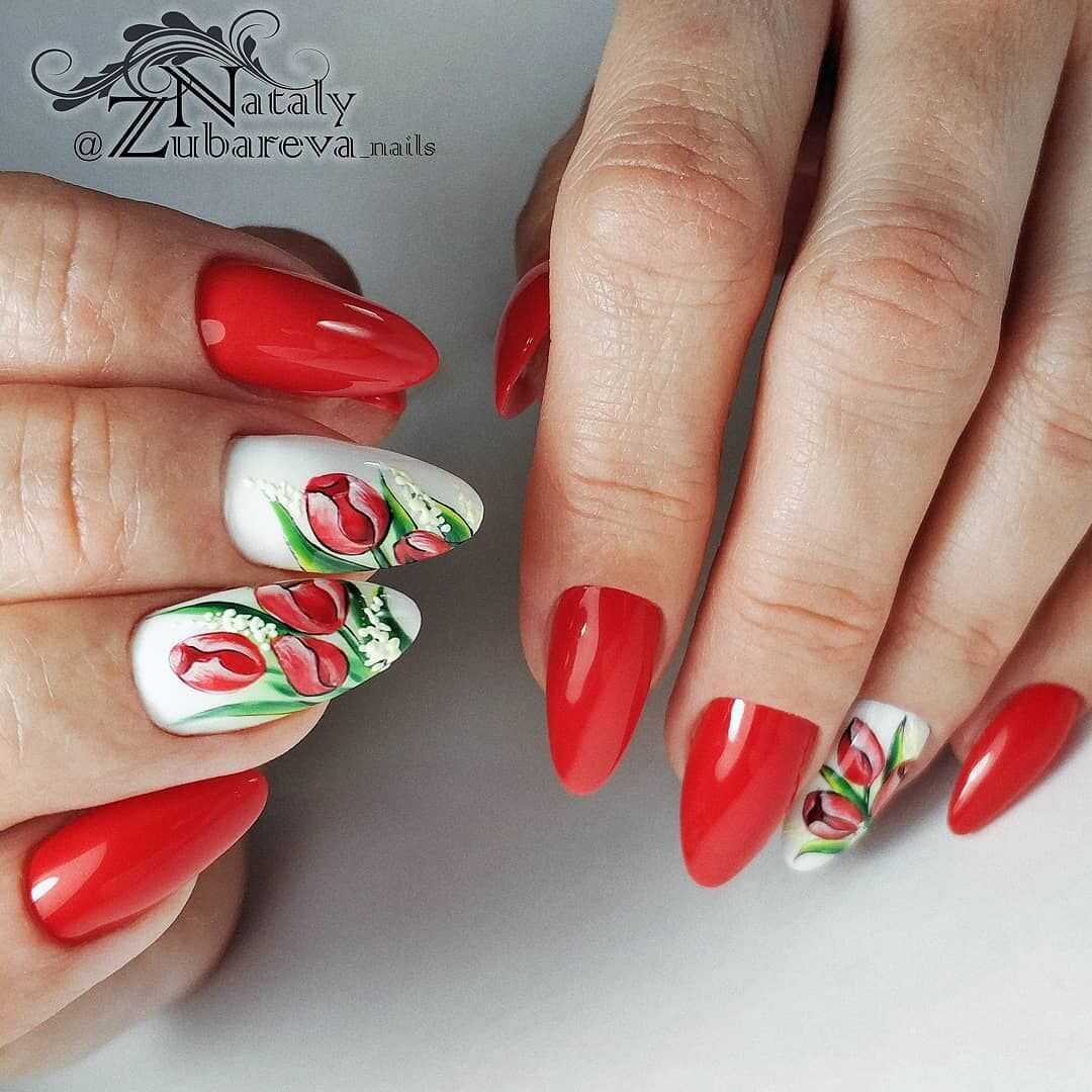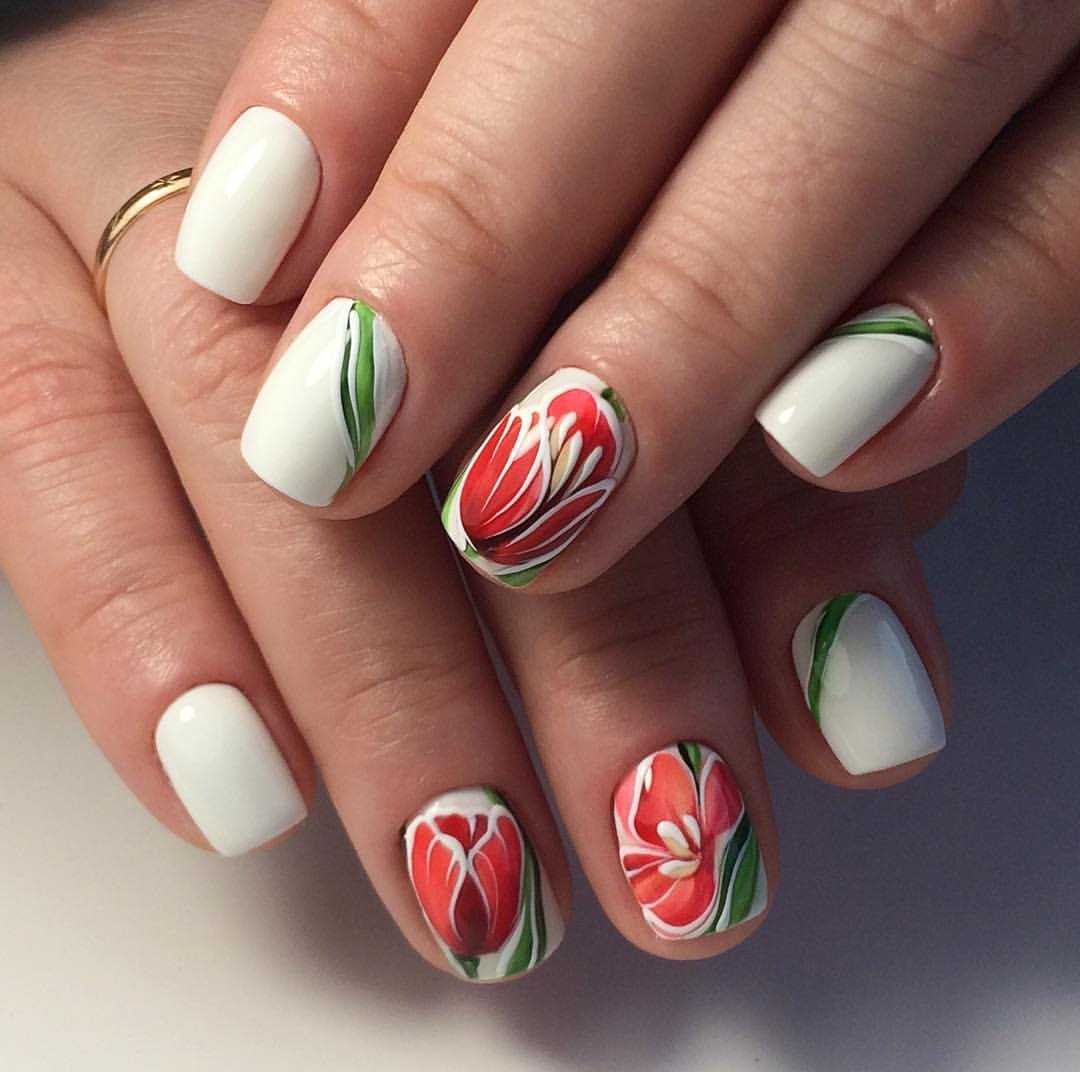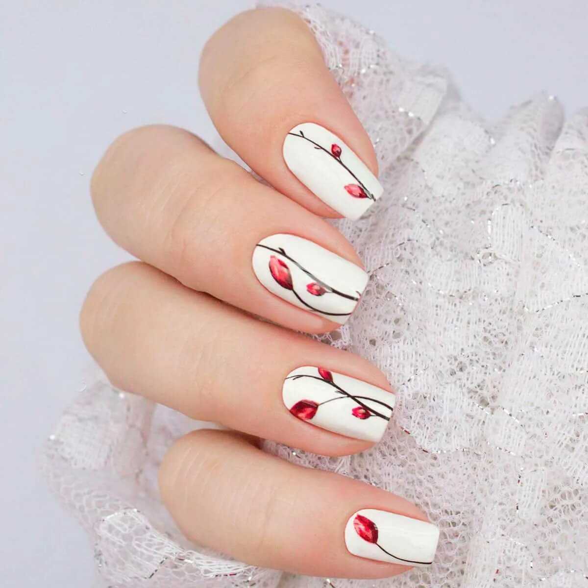 Если вы предпочитаете украшать свои ноготки лаконичными веточками, то дизайн с флористическими мотивами для вас идеальный вариант — он придаст женственности вашему образу. Кроме того, он популярен в любое время года. Весной и летом он вне конкуренции.