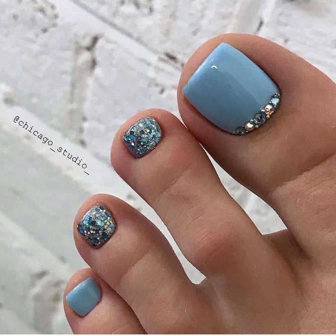Наиболее популярным декором, который идеально смотрится в педикюре являются стразы, фольга, скотч-лента, паутинка, бусины, наклейки, хлопья юки или песок.