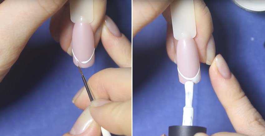 - Белым лаком аккуратно прорисовать носочек у каждого ногтя;