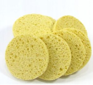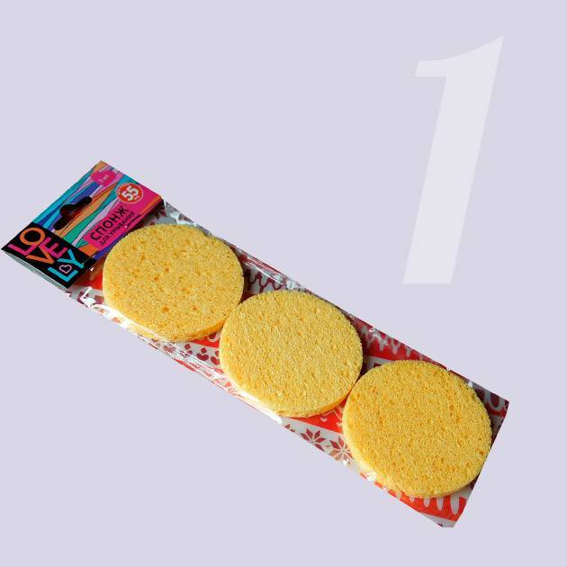 Самый популярный вариант — целлюлозные спонжи. Они выполнены из натурального растительного сырья, имеют выраженную пористую структуру. В сухом виде это довольно жесткая губка, которую нужно тщательно намочить теплой водой, затем нанести капельку очищающего средства. Спонж набухает, становится мягким и гибким. Он очень хорошо очищает кожу, нисколько при этом не травмируя.
