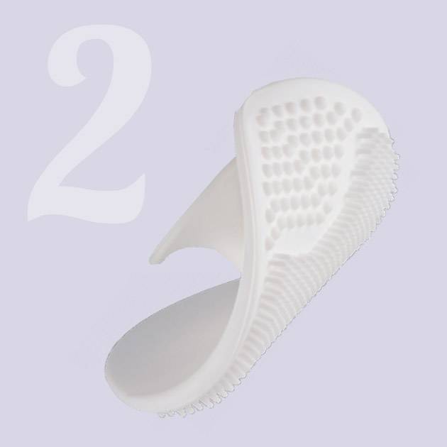 Силиконовые спонжи (рис. 2) отличаются особой мягкостью и деликатностью. Короткие эластичные щетинки на их поверхности позволяют очистить кожу даже от самых глубоких загрязнений. При помощи такой губки можно забыть о шелушениях и черных точках. Традиционный дизайн предполагает наличие на обратной стороне небольшой присоски, за которую удобно держать скользкий спонж при умывании и хранить его после, прикрепив за присоску к зеркалу в ванной.