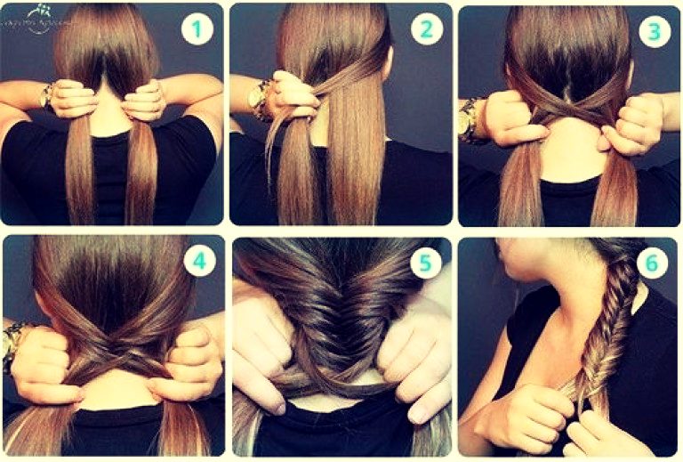 Хорошо расчешите волосы и сбрызните гидролайтом или спреем для волос, чтобы пряди не запутывались. Локоны поделите на две равные части. Отделите прядь с левого края внешней стороныи переведите в середину. То же самое проделайте с прядью с противоположной стороны. Постепенно все пряди переведите к центру. Рыбий хвост закрепите снизу резинкой. Спортивный стиль прически и удобство заставят возвращаться к этой укладке снова и снова во время занятий спортом.