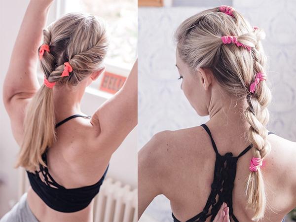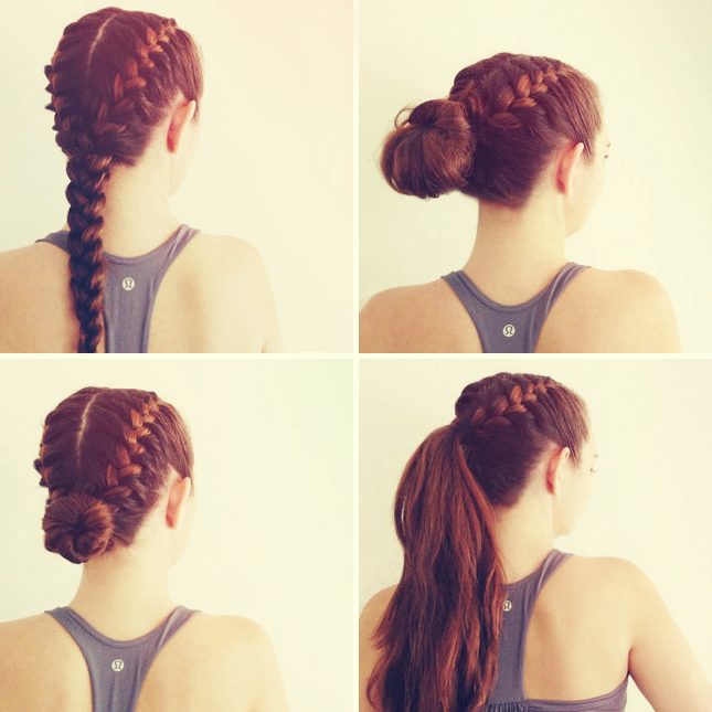 Косичка. Это самый распространенный и удобный вариант для занятий всеми видами спорта. Если волосы выбиваются из косы, можно по бокам собрать пряди заколочками. Здорово, если вы сможете заплести французскую косу, которая даст возможность собрать пряди различной длины. Сложность в том, что вам придется либо искать кого-то, кто сделает вам эту прическу, либо потратить достаточно много времени на плетение.
