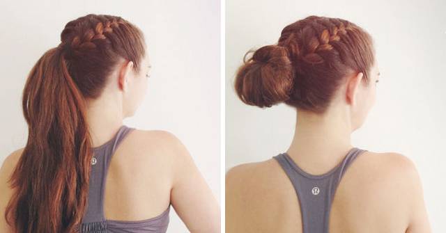 Простая и быстрая прическа соберет волосы от лица и шеи, создав комфортные условия для тренировки. Для того чтобы сделать пучок потребуется приготовить резинку и несколько шпилек. Потребуется собрать волосы в высокий хвост и завернуть его вокруг своей оси. В конце необходимо зафиксировать свободный конец шпилькой или невидимкой. Добавить изюминку можно, если получившийся хвост предварительно заплести в косу.