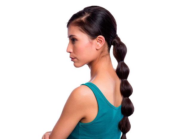 Когда нет возможности или желания плести косу, можно создать удобную прическу с помощью нескольких хвостиков. Чтобы сделать такую композицию, придется собрать волосы в хвост, зафиксировать с помощью резинки, а затем перевязать свободную часть другими резинками такого же или меньшего размера. Свободные волосы стоит немного распушить, создать объем, для интересного эффекта.