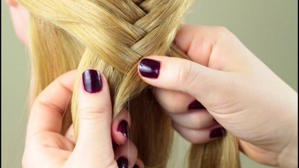 - Таким образом основная прядь располагается посредине, с разных ее сторон берутся более мелкие части. Для подробного ознакомления представляем видео.